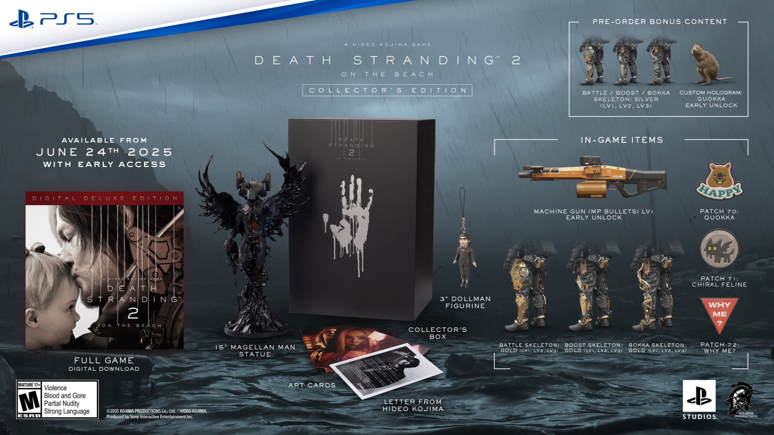 Death Stranding 2: On the Beach is due out on June 26, 2025, for PlayStation 5. Pre-orders open March 17 at 10 a.m. local time starting at $69.99 for the standard digital edition. An $89.99 digital deluxe edition will also be available, which includes a handful of extras and access to the game two days early.