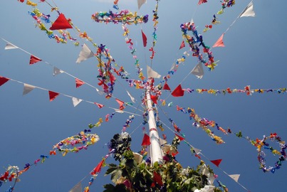 - Celebrations: Raising and decorating Maypoles, decorating buildings with green branches and flowers, crowning a May Queen, Jack in the Green, bonfires, feasting, dancing, singing, processions